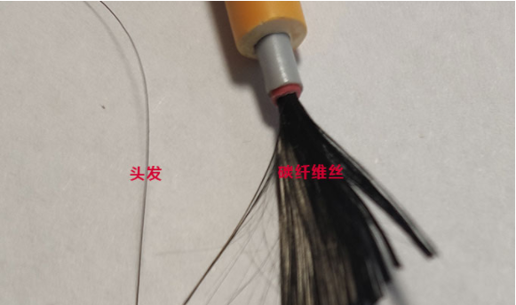 頭發(fā)與碳纖維絲比照